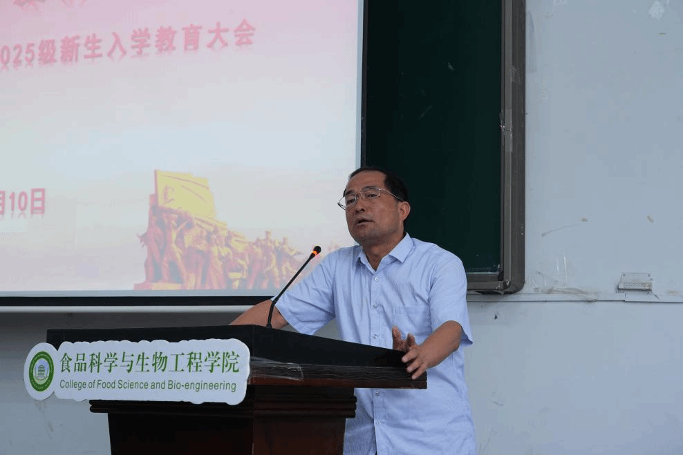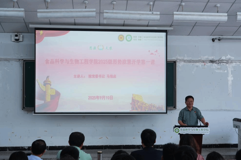 近期,食品科学与生物工程学院在西校区学术楼104举行2025级新生入学教育大会暨形势政策开学第一课。院党委书记马铭启,院长、党委副书记张军出席会议并为学生讲授开学第一课,党委副书记、纪委书记李强主持会议。