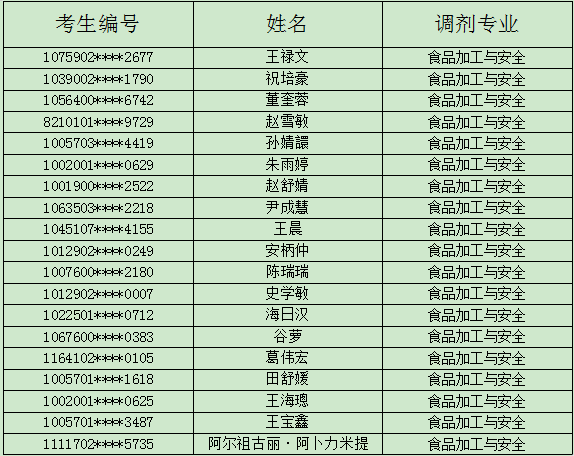 食品科学与生物工程学院2020年硕士研究生调剂复试资格名单