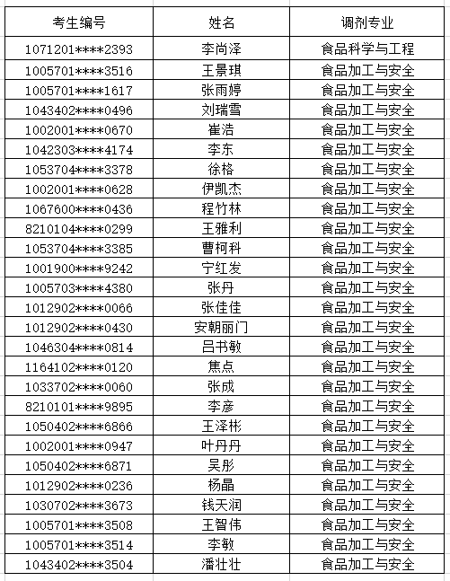 食品科学与生物工程学院2020年硕士研究生调剂复试资格名单(第二批)
