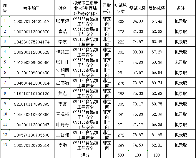 食品科学与生物工程学院2020年硕士研究生调剂拟录取名单及复试成绩(第二批)
